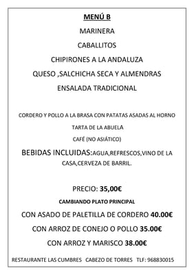 Restaurante Las Cumbres les ofrece información sobre los alérgenos que están presentes en nuestros platos. Puede consultar el listado de platos con identificación de las sustancias que producen alergias o intolerancias alimentarias recogidas en el Reglamento (UE)nº 1169/2011 en el siguiente enlace: