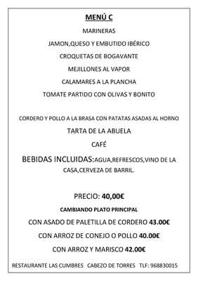 En nuestra carta destacan las carnes a la brasa,arroces y asados al horno de leña.