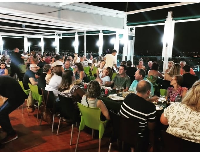 Amplia y espectacular por sus vistas inigualables tanto de dia como de noche.Con capacidad para 100 comensales.Aquí podrás comer o cenar al